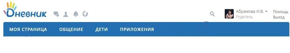 В верхней части личного кабинета находится основное меню, оно включает следующие разделы: «Моя страница», «Общение», «Дети», «Приложения».
