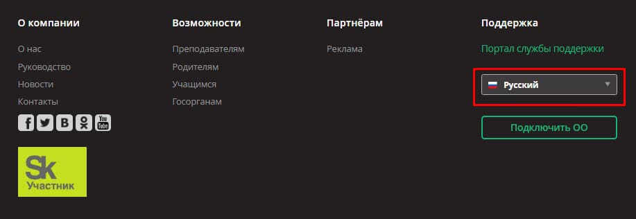 Язык отображения меню сайта можно выбрать и в нижней части страницы входа на портал.