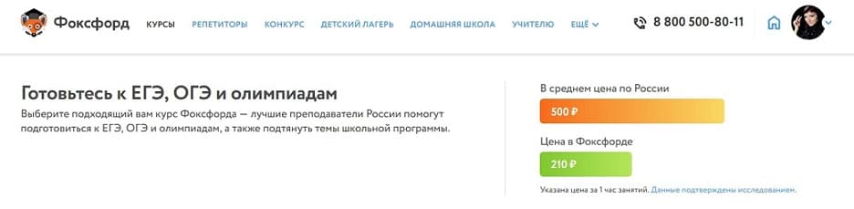 Средняя стоимость занятия с репетитором в России составляет 500 рублей. Цена за занятие на курсах Фоксфорда гораздо ниже.