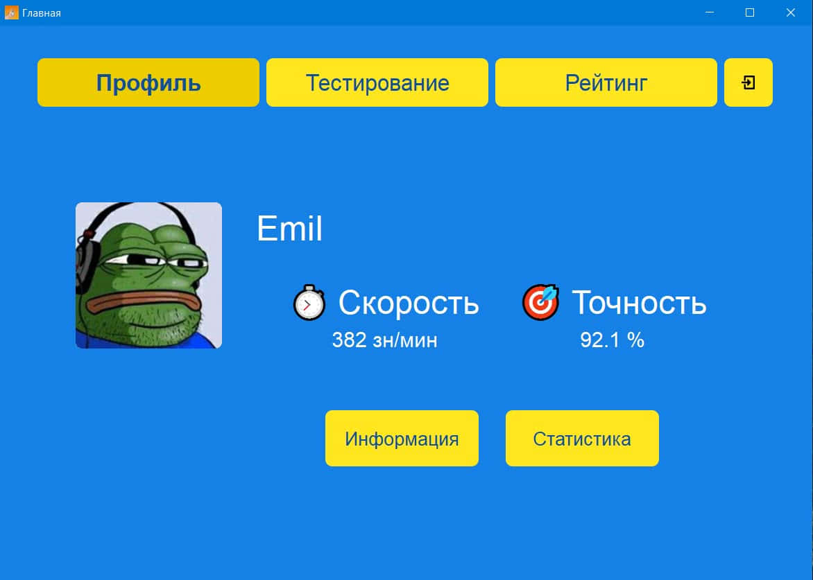 Для меня программирование — это сочетание математики и творческого подхода. Здорово, что оно даёт возможность сделать что-то полезное для общества. Свой выпускной проект, с которым я занял третье место в номинации «Десктопные приложения», я тоже считаю полезным. Я разработал приложение, которое помогает развивать навык печати вслепую. Это графическая клавиатура на экране, на которой пользователь видит, какую кнопку ему нужно нажать, правильную ли он нажал и какая у него скорость печати. Есть вкладка «Статистика» и рейтинг всех пользователей.