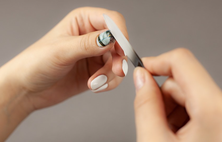 Шаг 4: Убрать размягченную тонкую кожицу с поверхности ногтя;