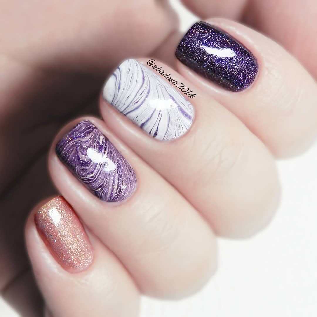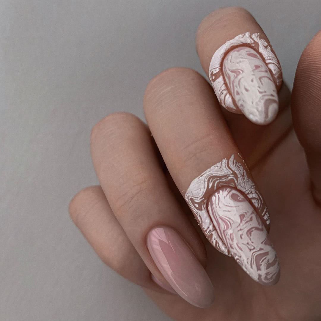 Стоун-маникюр с мраморным рисунком на ногтях, фото
