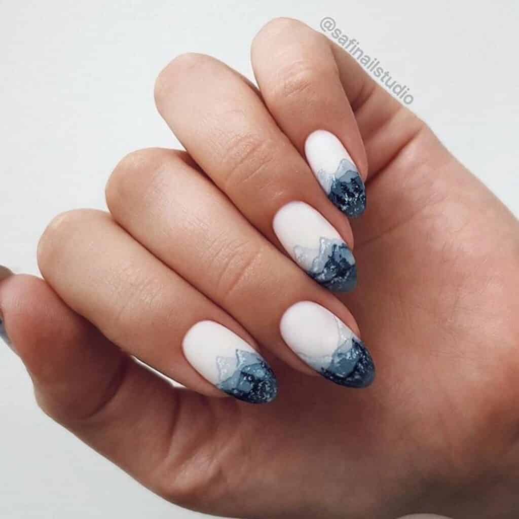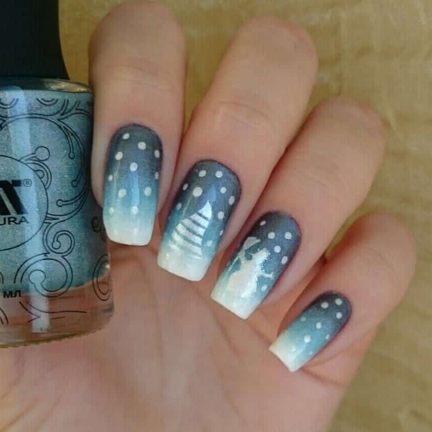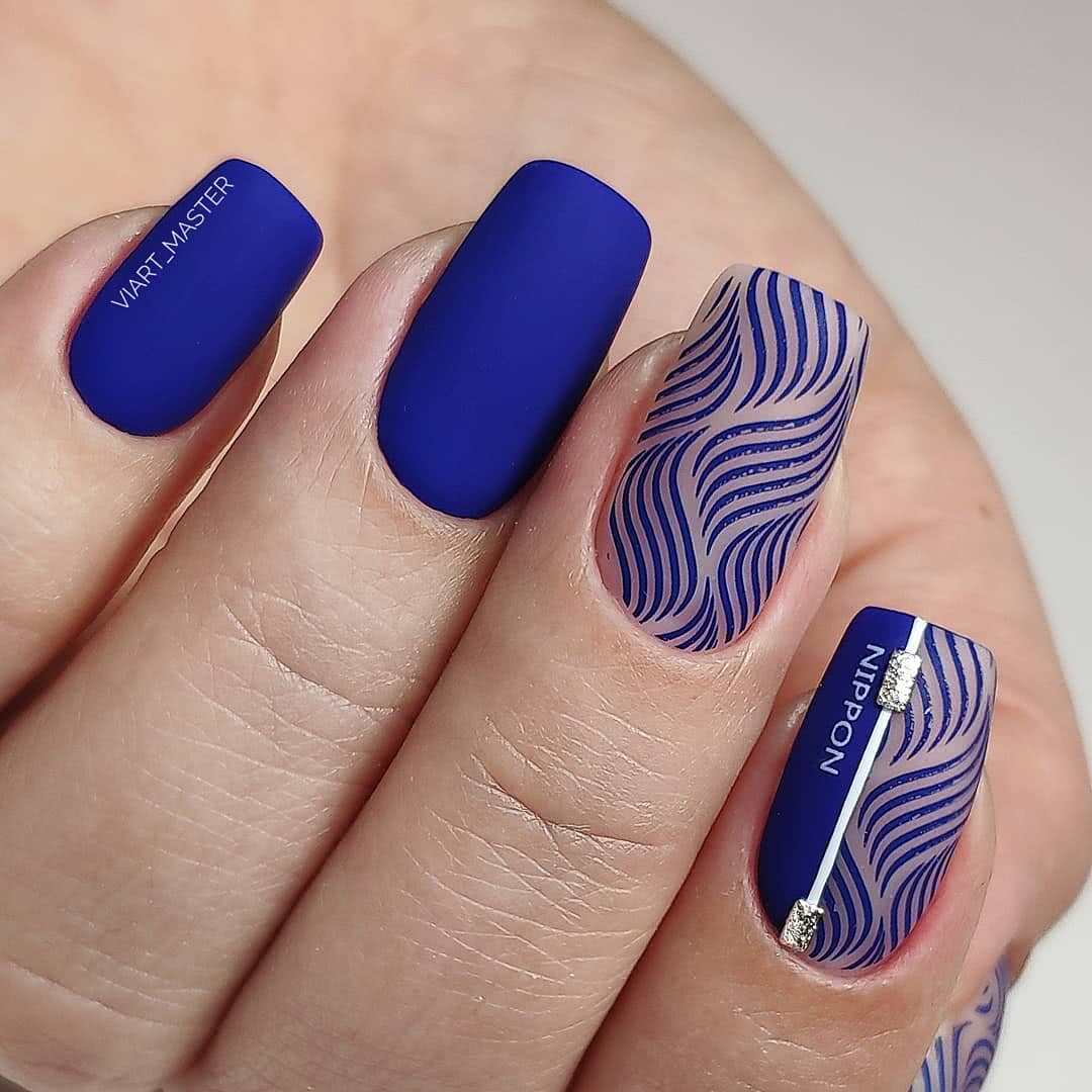 Рассматривая модные блоги бьюти – мастеров, можно сделать вывод, что зимой 2020 пальму первенства перехватит глубокий синий цвет. Его можно будет сочетать с серебристыми или золотистыми узорами, стразами или бусинками.