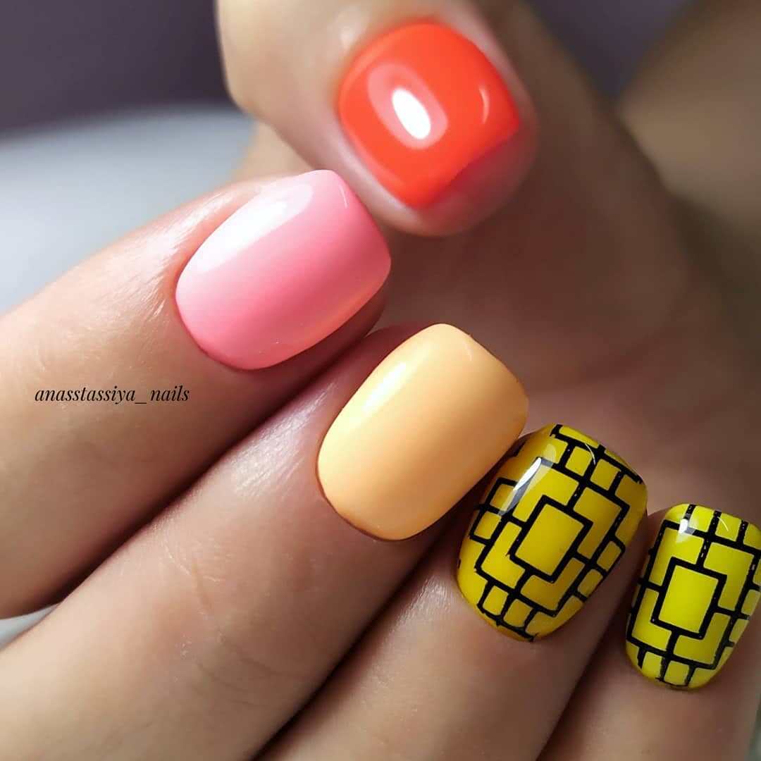 Стоит отметить, что мода на одинаковые ногти осталась в прошлом. Сейчас актуально красить ногти разными цветами.
