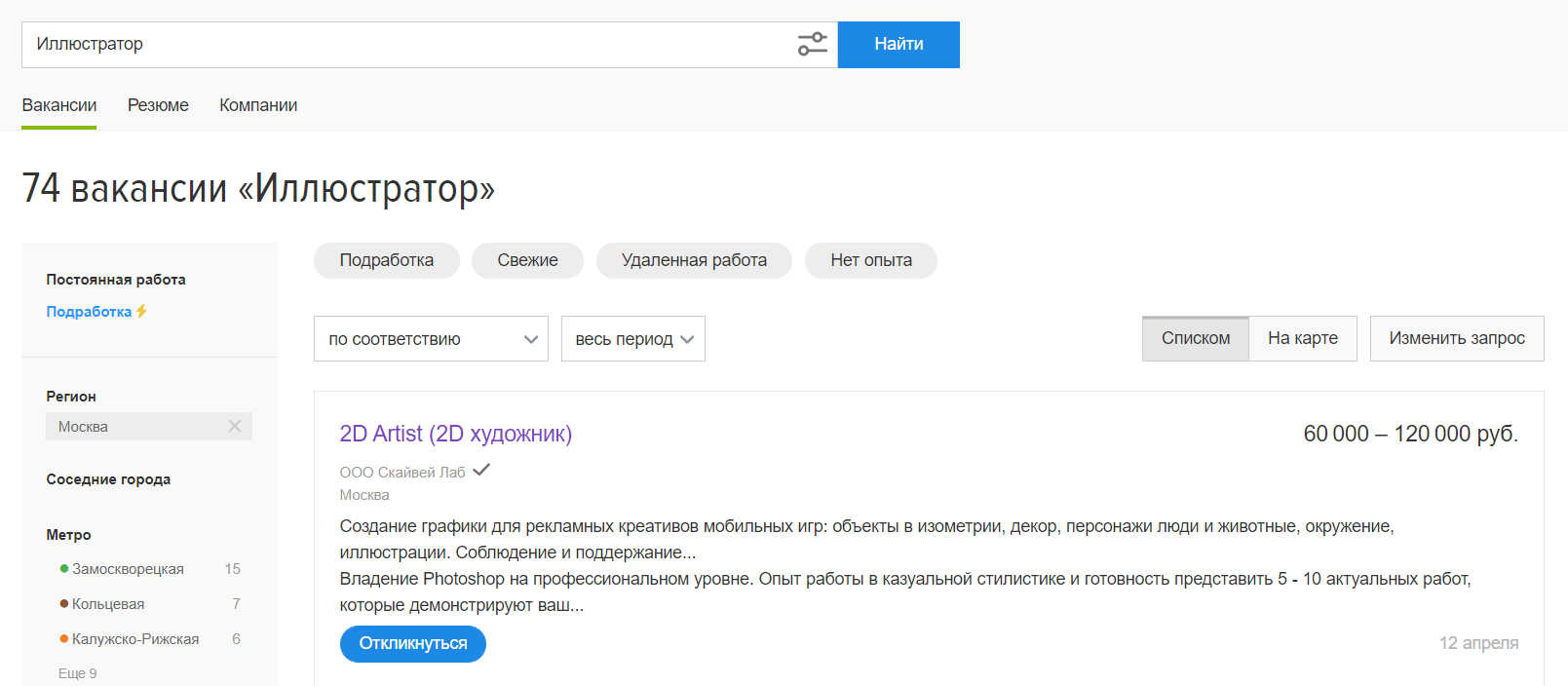 Даже в тех вакансиях, что есть, чаще встречается название 2D-художник, чем иллюстратор