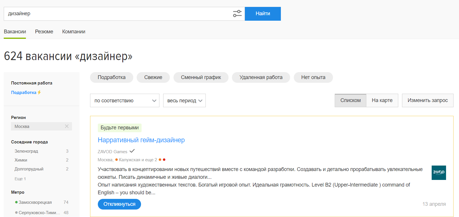 Вакансий для таких специалистов по Москве меньше, чем для менеджеров проекта