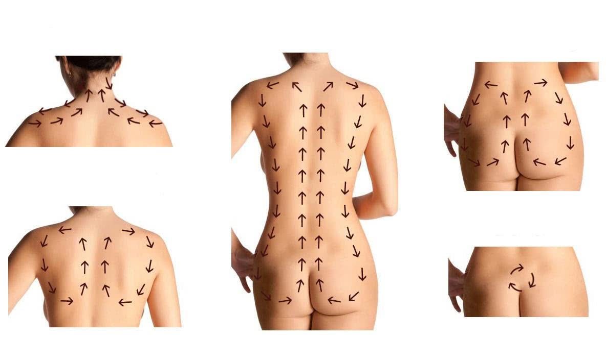 Рассмотрим технику на каждом участке тела пошагово. Перед тем, как приступить к выполнению, не забудьте обильно смазывать руки маслом. Если вы все делаете правильно, то руки будут скользить по коже, а не стягивать ее.