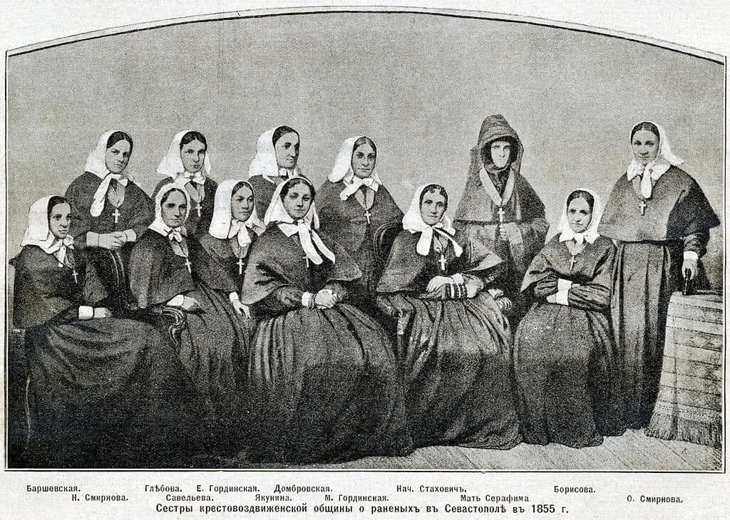 Сёстры Крестовоздвиженской общины, Севастополь, 1855 год. Сканирование: Владимир Васильев — XIX век. Иллюстрированный обзор минувшего столетия. СПб.: Издание А.Ф. Маркса. 1901. С. 132.