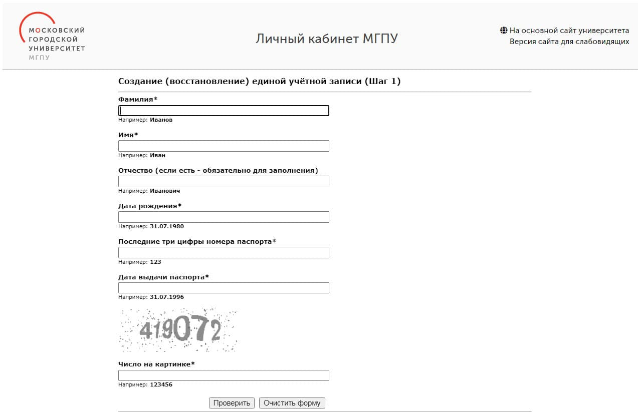 Перед тем, как перейти к инструкции, уточним, что создать единую учетную запись могут лишь учащиеся в университете, то есть, студенты. Личные кабинеты педагогов создаются после принятия их на работу техническим отделом МГПУ. Также стоит уточнить, что при университете работает школа. Регистрацией аккаунтов школьников занимается технический отдел школы.