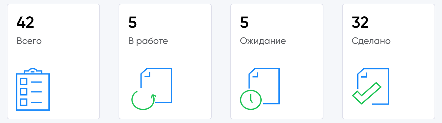Эта информация собирается на основе соответствующих полей в карточках Trello, которые можно отмечать галочками. По этому блоку можно оценить прогресс работы в проекте — сколько задач уже выполнено, и сколько работы еще предстоит.