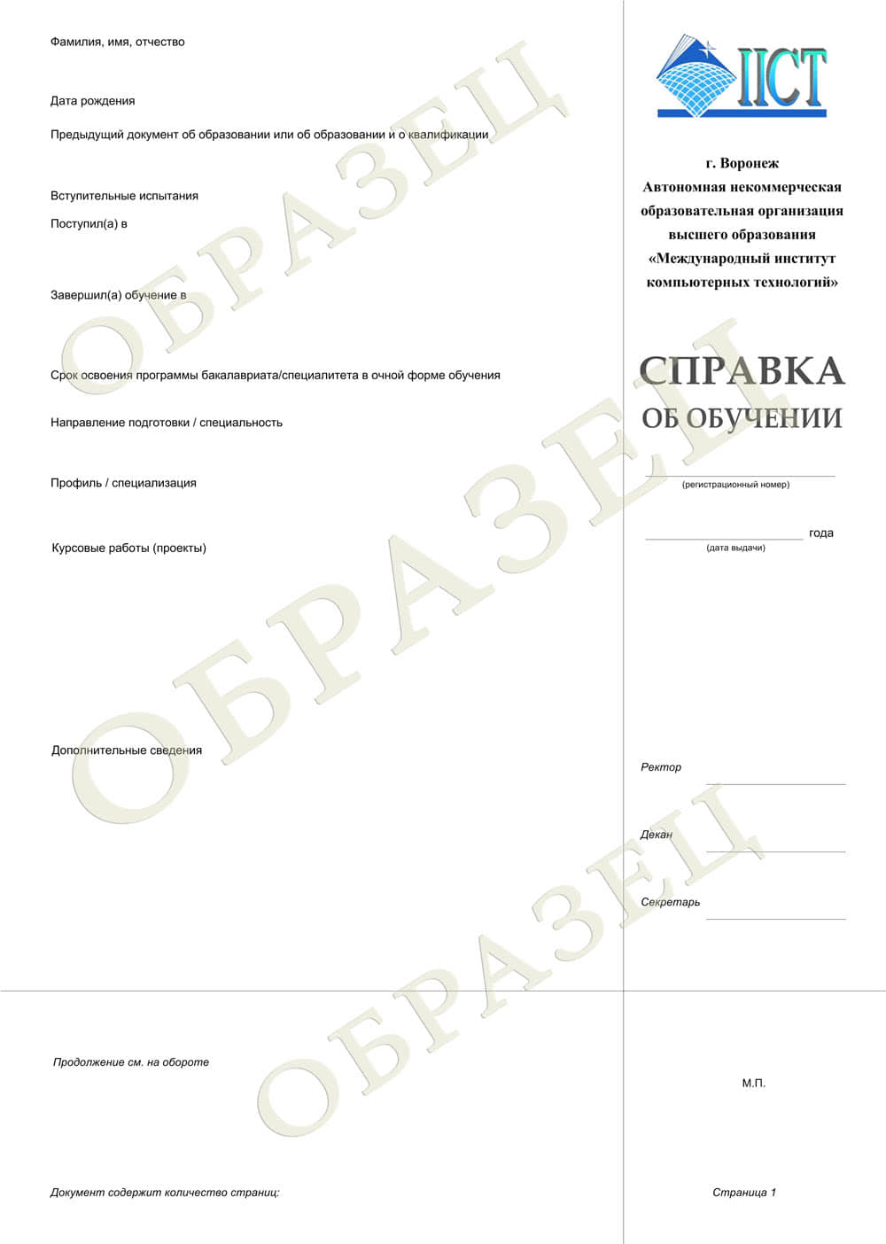 Справка об обучении – документ установленного вузом образца, содержащий сведения об обучающемся и результатах освоения им основной образовательной программы.