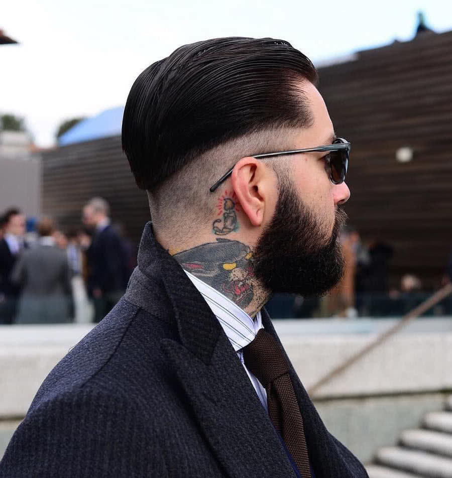 Это потрясающий стиль. Она отлично подойдет деловым мужчинам, которые любят классику. Также хорошо дополнит эту стрижку густая борода.