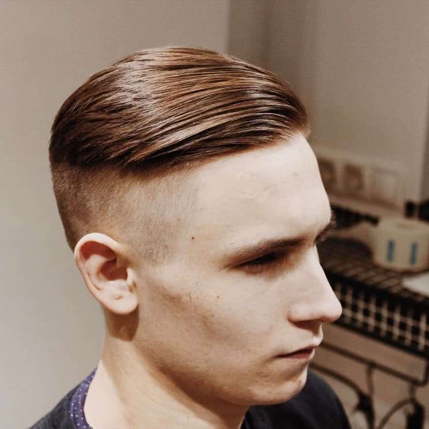 Одна из самых популярных мужских стрижек на данный момент — это «фэйд». Такую модельную прическу некоторые парикмахеры по старинке называют «Полька», хотя между ними есть различия. К примеру, «Фейд» укладывают по-разному, а вот «Полька» преимущественно с боковым пробором.