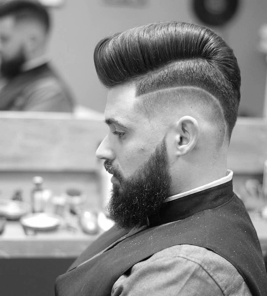 Классической помпадур, который доведен до совершенства. Большая борода отлично дополняет эту стрижку.