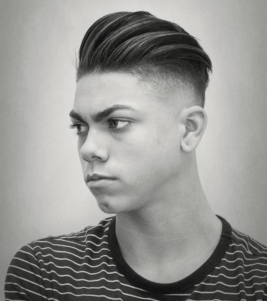 Одна из самых популярных модельных мужских стрижек — «помпадур». Прическа характеризуется объемной приподнятой челкой и аккуратно укороченными висками. Подходит мужчинам с прямоугольной, треугольной, трапециевидной формой лица.