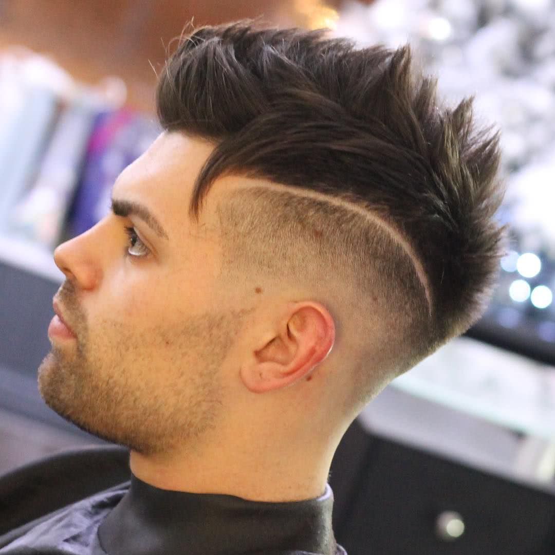 Стрижка для смелых. Выстриженные или выбритые короткие виски и часто полоска ото лба до затылка. Требует укладки.