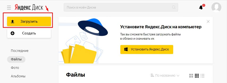 Открывается Яндекс Диск. Жму на кнопку «Загрузить»: