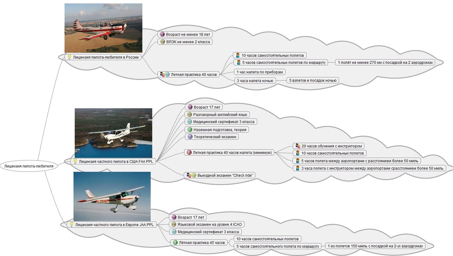 Подобные документы можно получить заграницей: лицензия частного пилота в США и в Европе. Требования для получения лицензии практически те же, что в России, но эти лицензии распространяются на тип воздушного судна: «однодвигательный самолет с поршневым двигателем и массой не более», а также отличие в стоимости и в качестве обучения. Получение PPL (Private Pilot License) в летных школах США обойдется в сумму 250000 – 350000 рублей, в Европе чуть дороже, а в России от 370000 рублей. В летных школах США преподают в основном инструкторы, которые остались набирать налет достаточный для получения коммерческой лицензии, они недавние курсанты и вряд ли доведут до вас все нюансы и тонкости обучения. В России же в основном инструктора – это бывшие военные с очень большим налетом, которым есть, что передать.