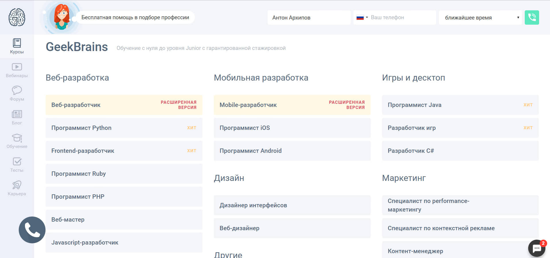 | GeekBrains | веб-разработка, тестирование, программирование, дизайн, инженерия, интернет-маркетинг и менеджмент. | взрослые, студенты и школьники |