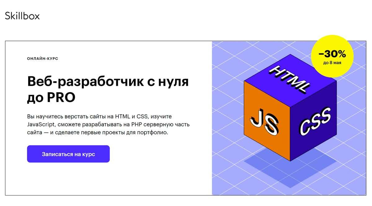 Чтобы создавать красивые и удобные сайты, нужно освоить много навыков: верстка на HTML и CSS, работа с API, работа с базами данных, разработка digital-проектов. Все эти темы включены в курс по веб-программированию от Skillbox. Структурированная подача материала, поддержка куратора и высокая концентрация практики обеспечит успешное освоение профессии и трудоустройство.