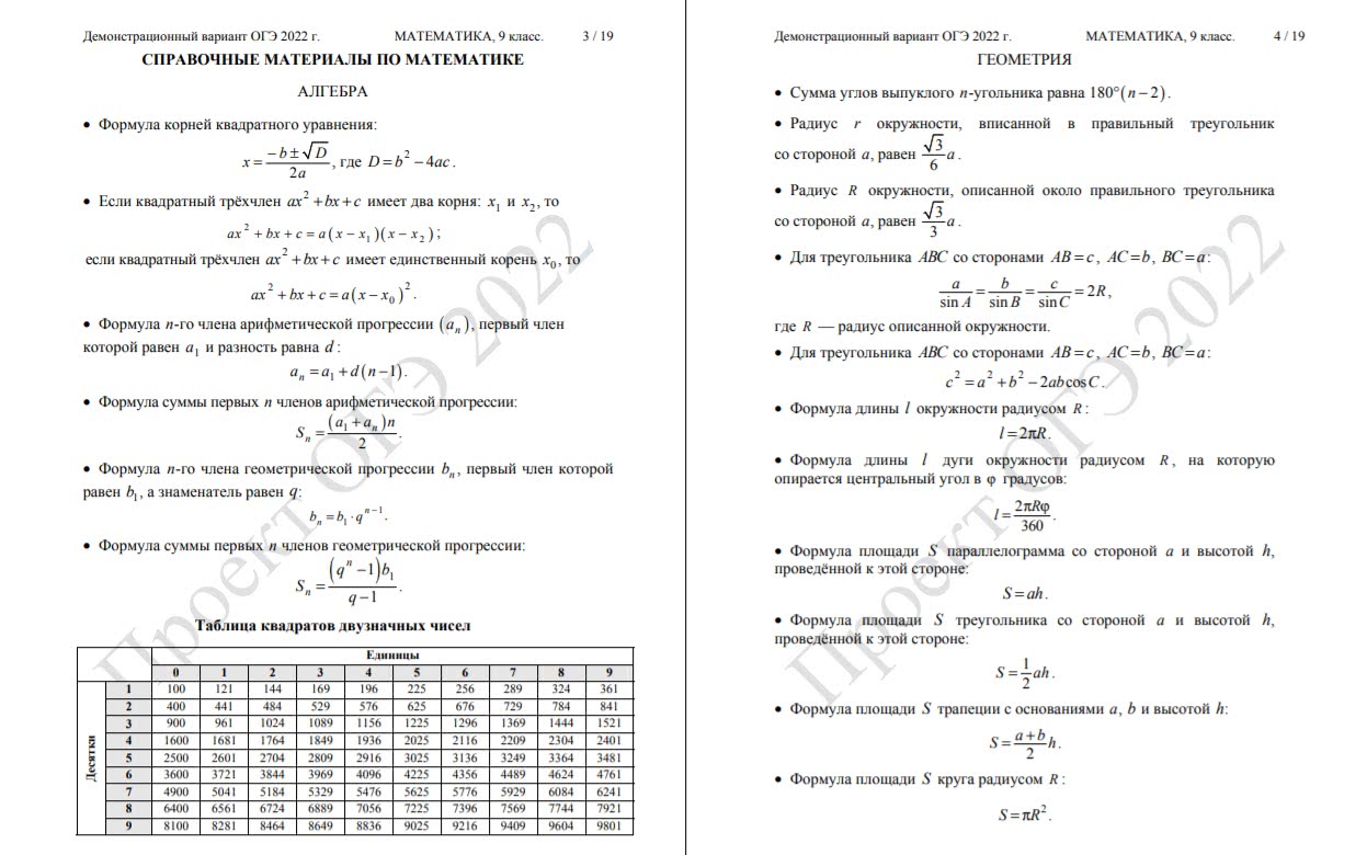 В качестве официальной шпаргалки в 9 классе предоставляют основные формулы из курса алгебры и геометрии, размещенные в самом начале КИМа.