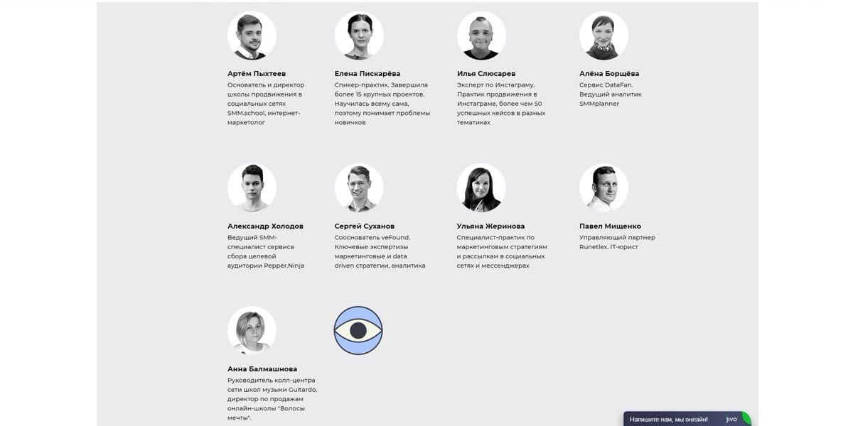 Все кураторы курса – работающие специалисты. Маркетологи, бизнесмены, аналитики, SMM-щики.