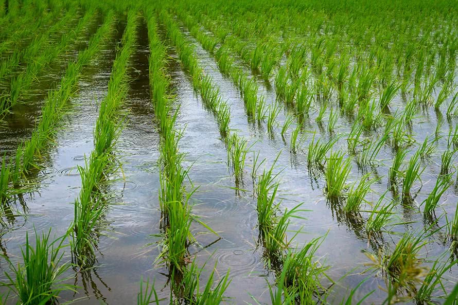 На первом изображении я сфотографировал рисовое поле во время сезона дождей. Вместо общего плана поля, я сосредоточился на повторяющемся рисунке, которые дают кустики риса.