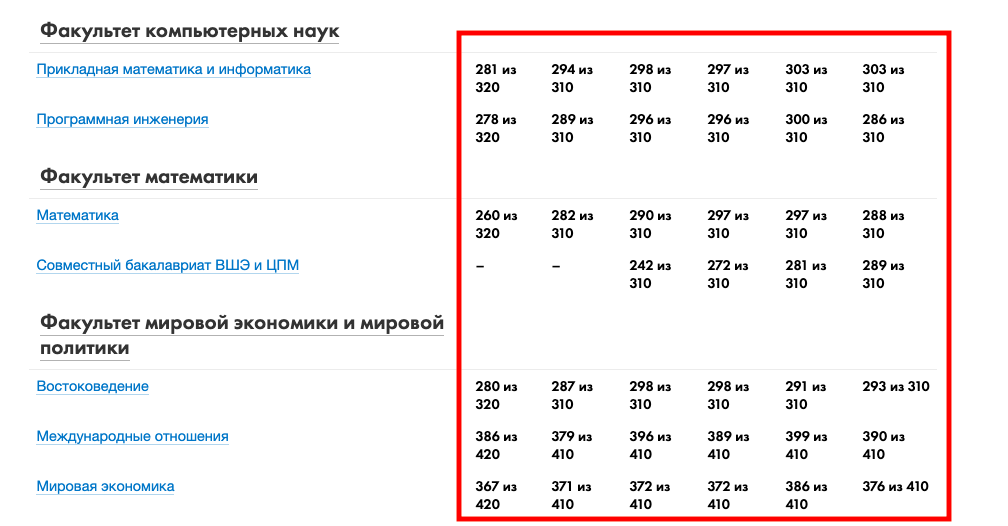 Проходной балл на бюджет в НИУ ВШЭ в Москве, годы на сайте вуза