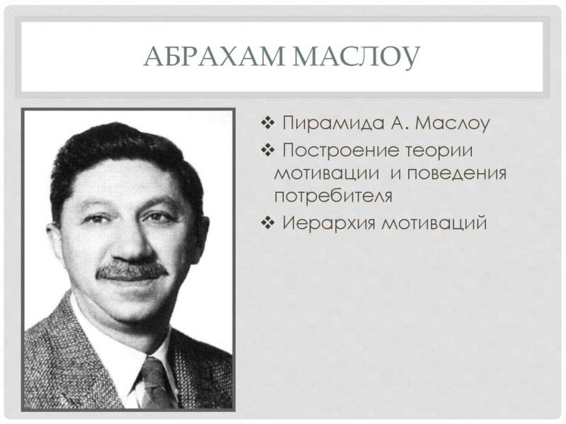 Создатель всеми известной пирамиды Маслоу — Абрахам Маслоу — родился в Бруклине 1 апреля 1908 года. В начале прошлого века его семья приняла решение эмигрировать в Соединенные Штаты. Его мать и отец были очень разными: Самуил Маслов любил кутить, участвовать в драках и заигрывать с женщинами, а Роза Маслова была набожна и очень строга.