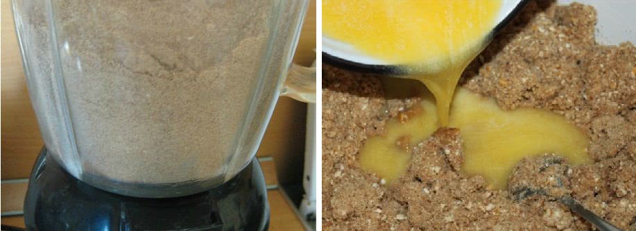 Итак, печенье сейчас нам нужно перетереть в крошку. Удобнее всего воспользоваться блендером. Просто накрошите его в чашу кусочками и включите процессор, пока он не измельчит массу в муку.