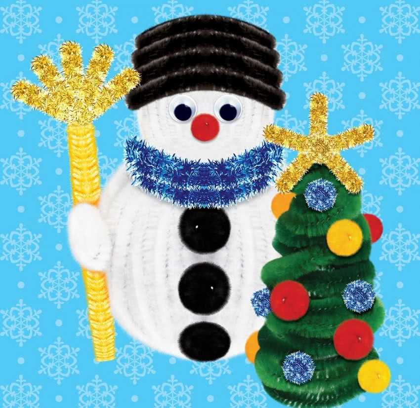 Вот еще одна зимняя поделка для деток, которая точно понравится малышам. Снеговика очень просто сделать из пушистой проволоки. Он послужит украшением для елки, дома или поделкой для садика. Подготовьте побольше белой синели и приступим.