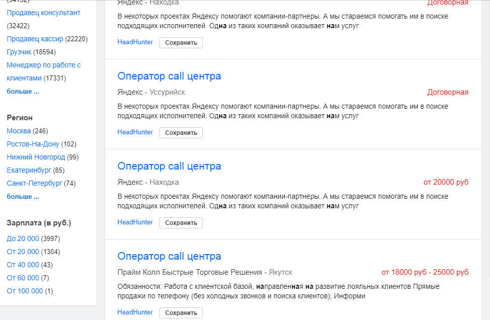 Крупнейший и наиболее известный сайт. С помощью хорошего интерфейса удобно осуществлять поиск вакансий, в т.ч. и подработку. Информация о заказчиках скрыта, и для ее получения необходимо зарегистрироваться. Выполнив эту процедуру, можно будет на конкретном объявлении нажать кнопку «откликнуться» и увидеть номер телефона нанимателя. Позвонив, уточняют все интересующие детали. Имеются вакансии: няня, домработница, рекрутеры, разнорабочие и прочее.