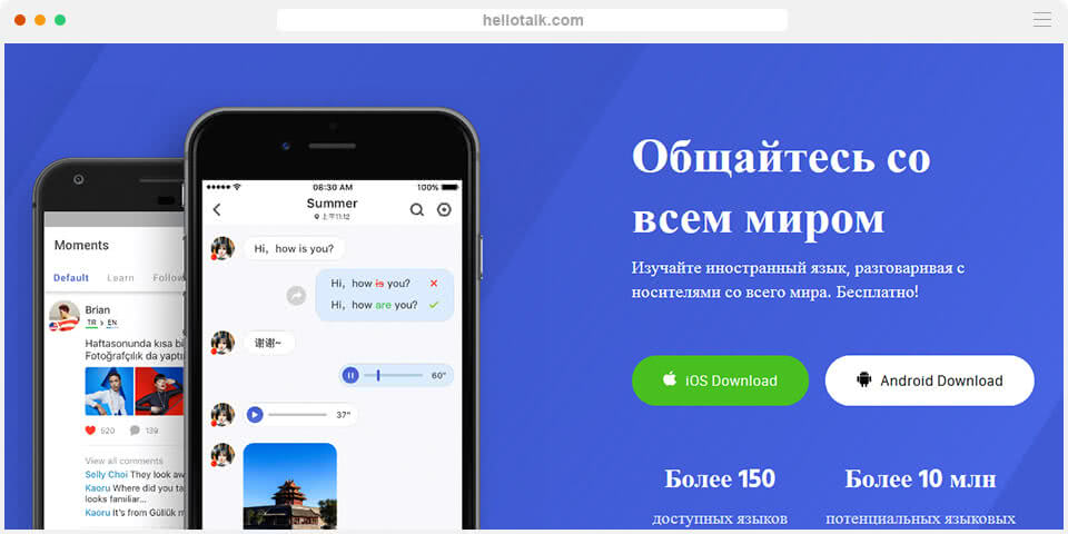 class=»img-responsive»>Приложение обучает ста языкам используя носителей речи как преподавателей. Содержит переводчик и транслитерацию для людей, устраняя проблемы коммуникации на начальном этапе. Предлагает два вида обучения. Первый вариант голосовыми сообщениями с собеседником, HelloTalk записывает родную речь и переводит на речь оппонента и в обратном порядке. Второй способ текстовый, по чату с автоматическим переводом и возможностями проверки и коррекции перед отправкой сообщения. Общение с носителями речи способствует получению знаний в непринуждённой обстановке. Пять миллионов пользователей. Выбор редакции в Google Play.