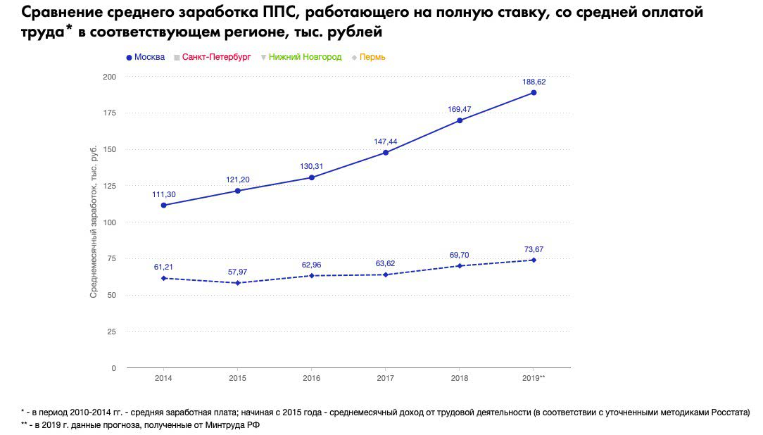 Последние годы зарплата преподавателей вузов в России, как правило, в два раза превышает среднюю зарплату по региону: