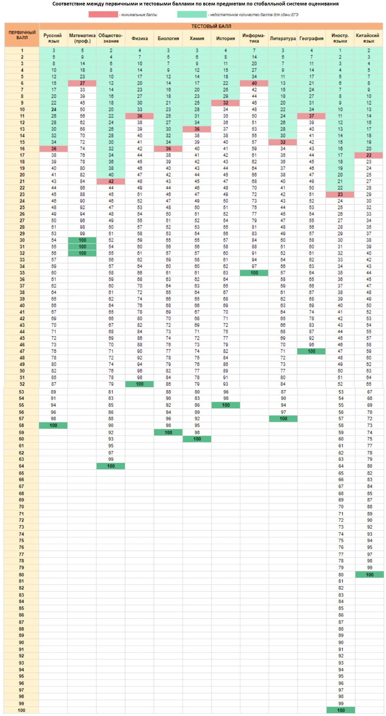 - красная линия – минимальный порог, необходимый для получения документа об образовании;