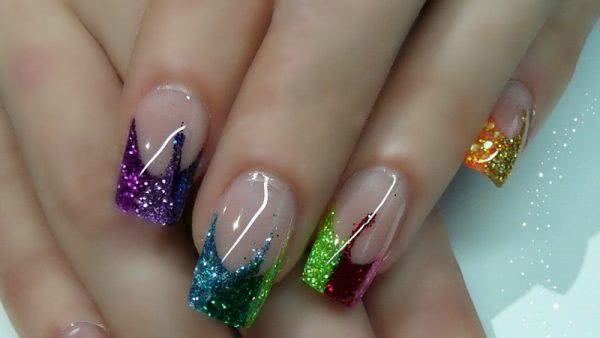Декоративный цветной слой наносится по тому же принципу. Ногтевая пластина покрывается тонким слоем базы, а затем ноготок обильно засыпается цветным порошком.