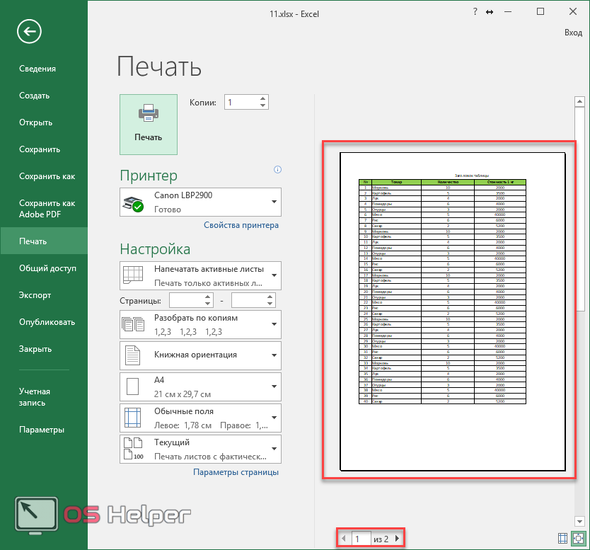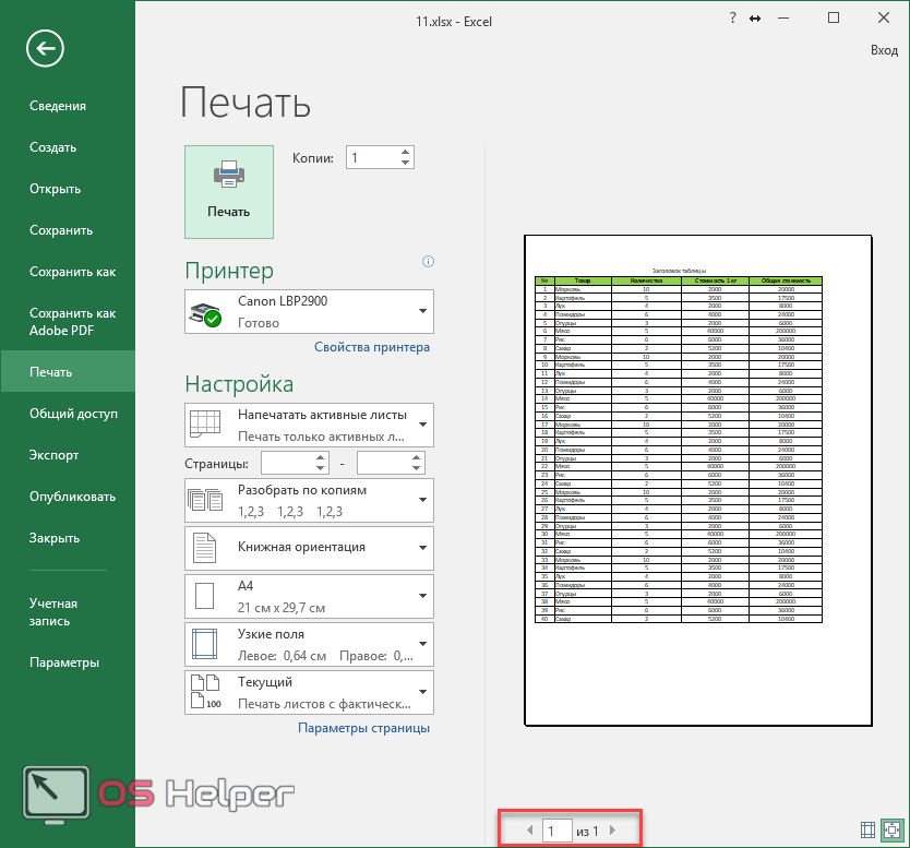 - Снова нажимаем на Ctrl+P. Теперь мы видим, что информация помещается на один лист.