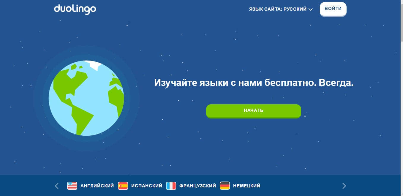 Начнете вы с изучения простых глаголов, и с каждым днем «Duolingo» будет повышать планку до тех пор, пока вы не научитесь speaking English.