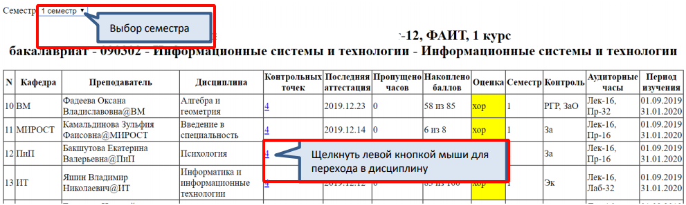 В течение семестра обучающееся лицо накапливает баллы. Отследить свою успеваемость и пропущенные пары можно через личный кабинет СамГТУ. При открытии списка дисциплин отображается информация по преподавателям, полученным отметкам, пропускам, периоду изучения тем.