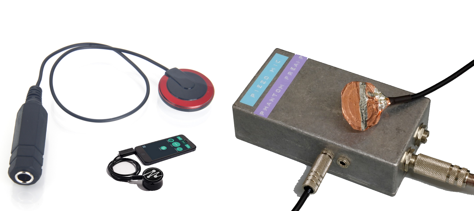 Если применение живых фактур покажется интересным занятием, можно расширить свой набор инструментов до портативного рекордера и одного или нескольких микрофонов. Для записи материала под SFX крайне желательно обзавестись контактным микрофоном – это может быть простейший пьезоэлемент за 100 рублей и самодельный предусилитель – такой микрофон позволяет записывать вибрацию предметов и в дальнейшем подмешивать её к акустическому сигналу с основного микрофона. Вибрация даст особенные низкие частоты, которых не получится записать привычным акустическим методом.