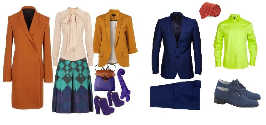 Единственным акцентом в «сочетании несочетаемого» может быть оттенок одежды. Современные палитры предлагают множество холодных и теплых тонов одного и того же цвета. Так, к примеру ванильный немного приглушеннее лимонного и его успешно можно совместить с теплым фиолетовым цветом.