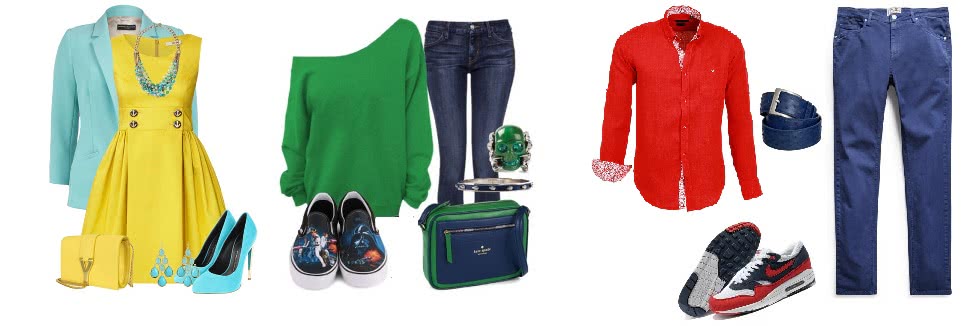 Триадные цвета – это три тона, равноудаленных на цветовом круге. Если вы хотите яркий и сбалансированный наряд, вам может подойти триадная цветовая схема. (Имейте в виду, что здесь даны только комбинации иллюстрирующие оттенки, которые мы объединяем. В большинстве цветовых схем предлагаются различные вариации насыщенности).