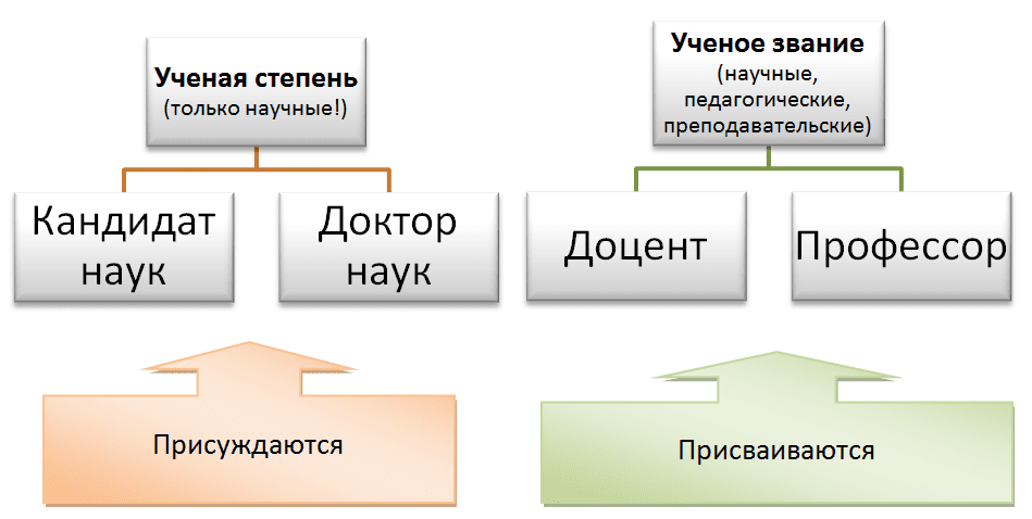 Они отличаются сложностью присвоения, требованиями к соискателям, длительностью получения, последующим статусом обладателей.