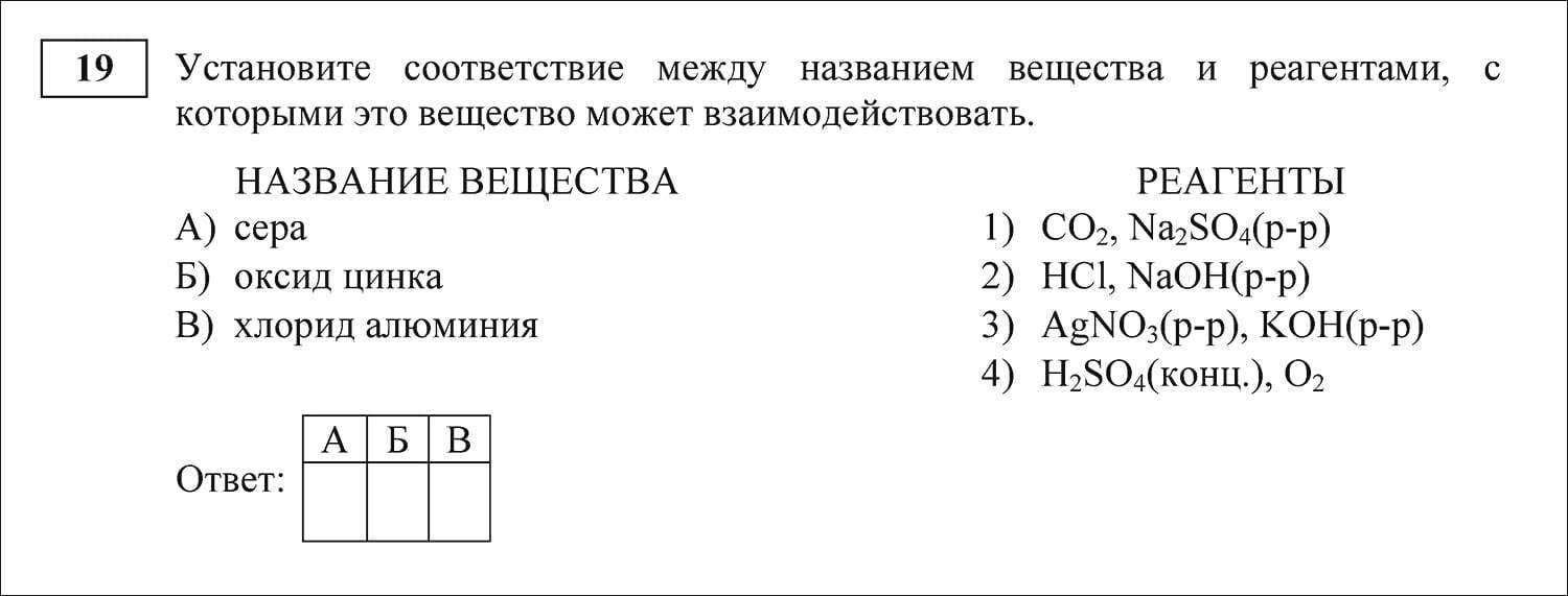 Задание № 19. Нужно определить, с каким набором веществ реагирует исходное соединение