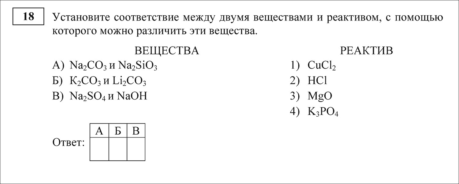Многие школьники определяют первое вещество и вычёркивают его. Сложность в том, что весь правый столбец нужно рассматривать для работы с каждым элементом слева.
