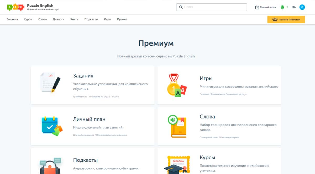 Puzzle English — условно бесплатная платформа для обучения английскому языку. По сути, это набор упражнений, заданий и игр, которые помогают изучать язык с разных сторон.