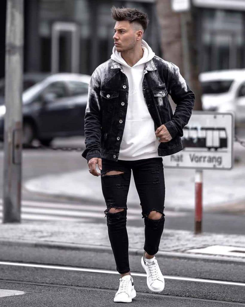 - Streetwear – это удобные и практичные вещи, в которых комфортно будет целый день. Толстовки и футболки, джоггеры и джинсы, кепки, бейсболки носят парни и девушки.