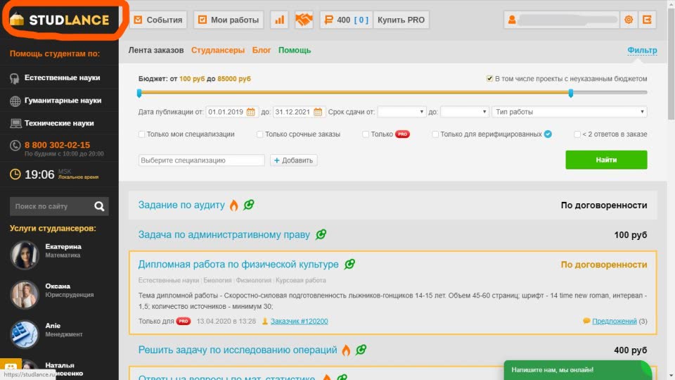 Чтобы перейти в ленту с заказами, нажимаем на слово «Studlance». Вот что видим: