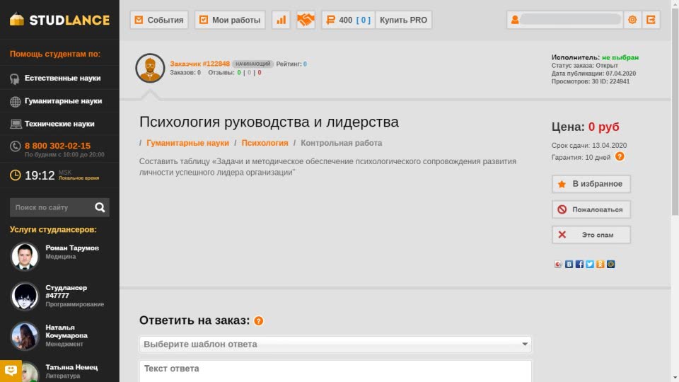 Все, ждем. Если вас выберут исполнителем, то на почту придет уведомление. После этого можно приступать к выполнению заказа. Если по ходу написания студенческой работы возникли вопросы, то переходите в профиль заказчика и там пишите личное сообщение.