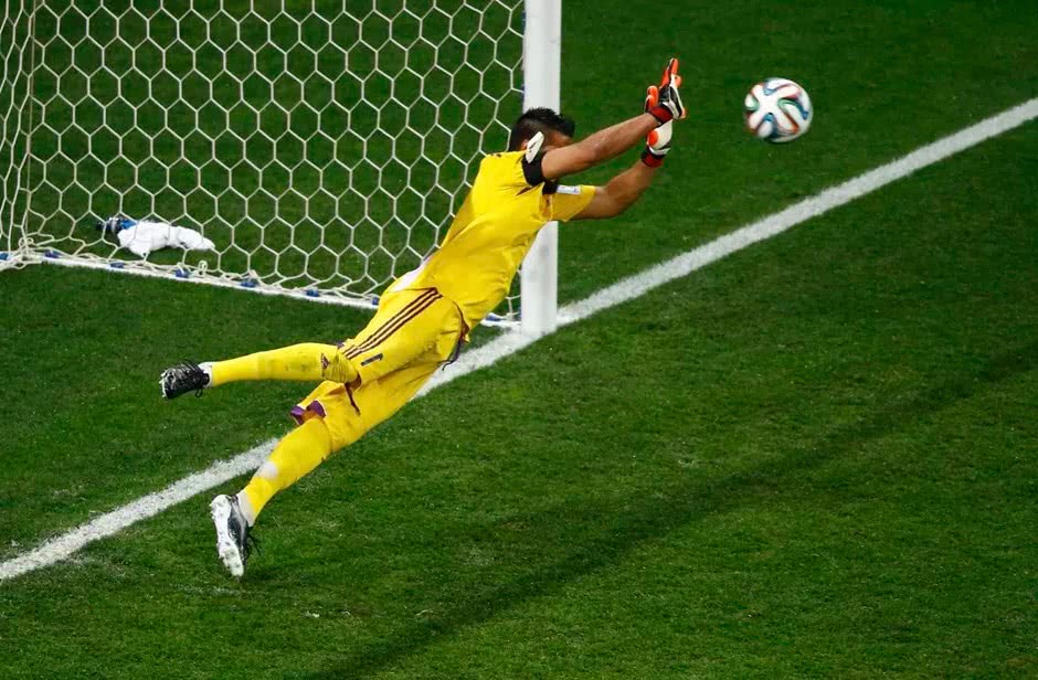 - труднодосягаемость мячика (летит прямо в дальнюю девятку, впритирку с дальней штангой и др.);